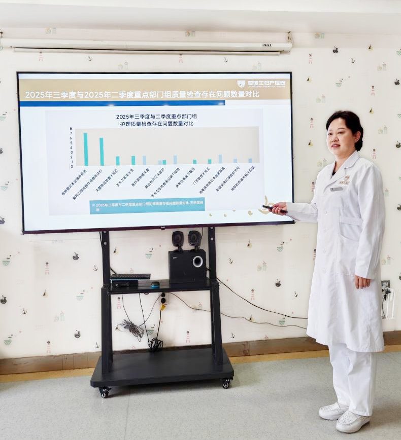 按照《阳泉爱德生妇产医院护理质控标准》要求,我院护理质控组从病房管理、分级护理、安全管理、重点部门、护理文书、技术操作等方面对全院护理工作进行了全面系统的检查,分别从本季度各质控组检查情况、工作亮点、指标完成情况、检查存在问题等逐一梳理、反馈。利用数据量表、管理工具对存在的问题全面深入分析,针对新发现问题、突出问题进行深入分析,制定出持之有效的改进措施,同时与上一季度质控数据进行环比,能够明显看出护理质量稳步提升。